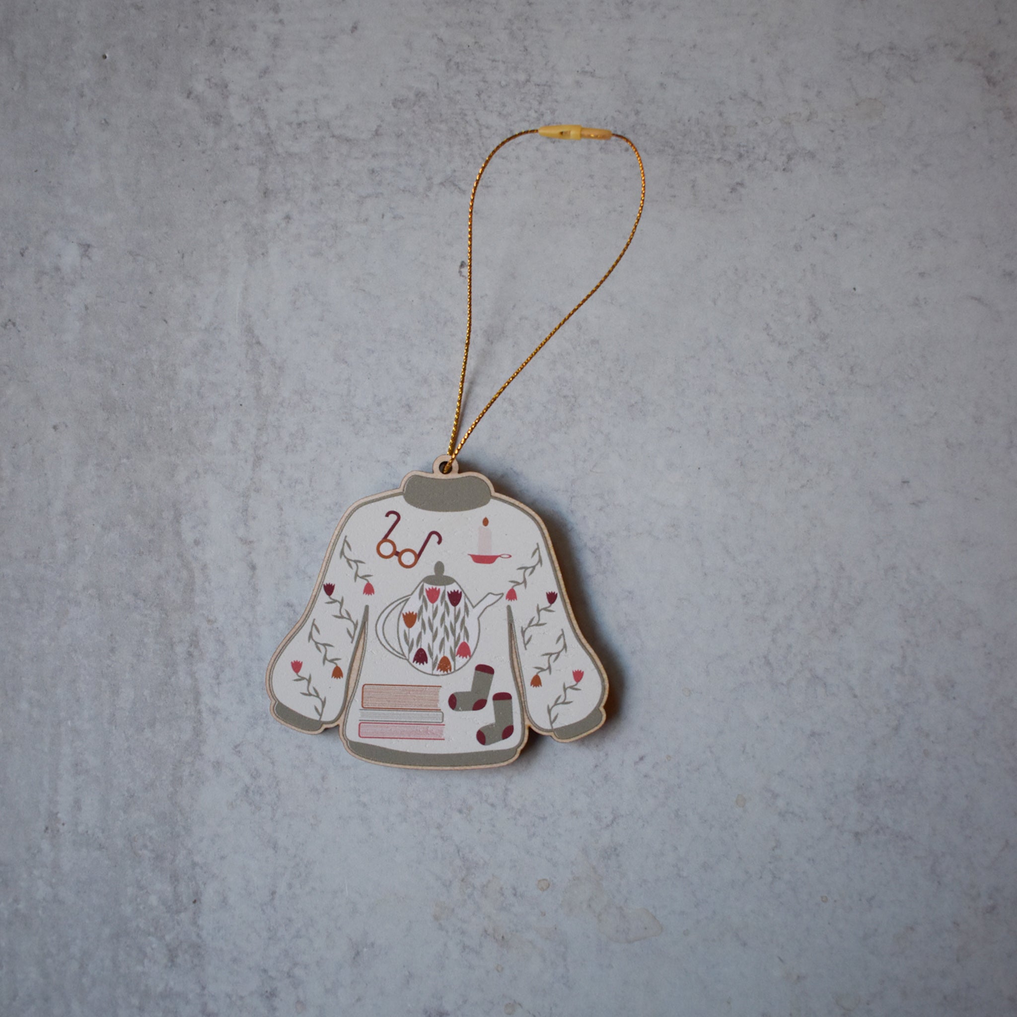 This 3-inch wood ornament features my sweater weather design printed on sustainably sourced maple veneered MDF construction.